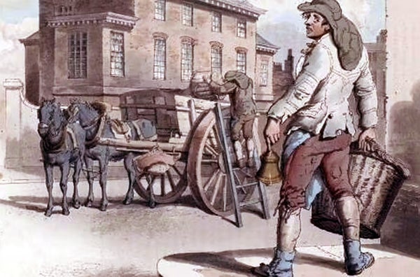 Cesspools in London, like those in the Broad Street area, were emptied at periodic intervals by "night-soil men," often coming in evenings when the stench would lessen. They would dig out the feces and urine in the cesspools with shovels and baskets, then disposed the material in horse- or mule-pulled tank wagons. These tanks would then be taken to the countryside and either emptied on a paddock or in a "night-soil depository," or mixed in with other organic waste such as food scraps or horse manure for drying. Once dried, the waste would be placed in bags and sold to farmers as crop fertilizer. Since the germ theory was not yet understood or accepted, there was no thought of further microbial contamination.