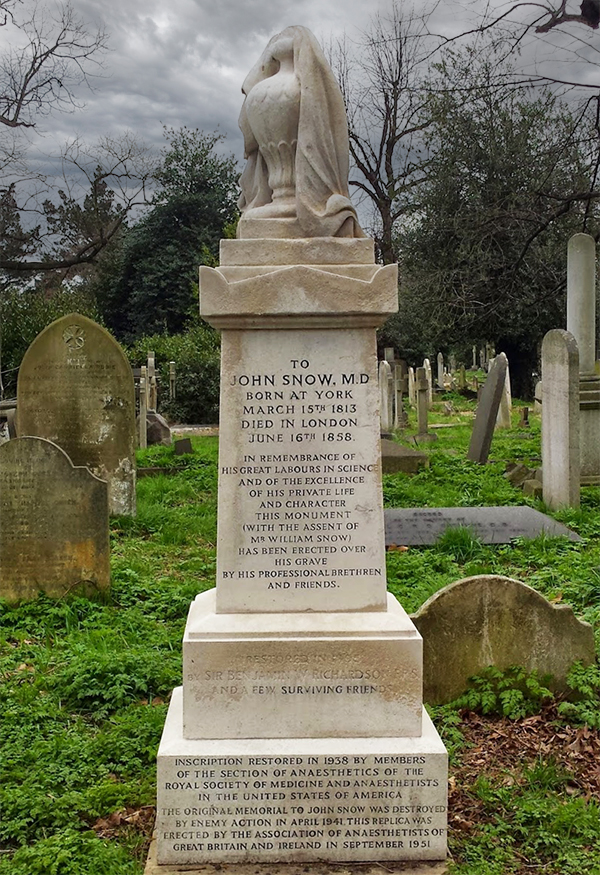 THE LATE DR. JOHN SNOW — A few professional friends have been kind enough to join with me in undertaking to place in the Brompton Cemetery, a plain but durable monument over the grave of the late Dr. Snow, as a last and fitting memorial of the esteem in which he was held by those of his professional brethren who had the pleasure of his friendship. Having ascertained that such mark of remembrance would be congenial to the feelings of Dr. Snow’s relations, I take the opportunity of making the project widely known through your columns , feeling sure that a great many members of the medical body will be glad to co-operate in paying this simple tribute to the memory of our late estimable and distinguished brother in science. A committee will be organized shortly to carry out this object to completion; meanwhile, subscription for the memorial may be forwarded to Dr. Hanksley, 26 George Street, Hanover Square, or to myself. B.W. Richardson, 12 Hinde Street, May 18, 1859.