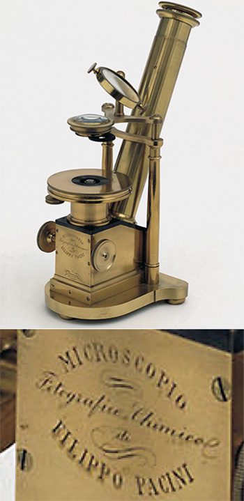 University of Florence for Pacini's use (see brass image above). This helped with his discovery of the cholera organisms.